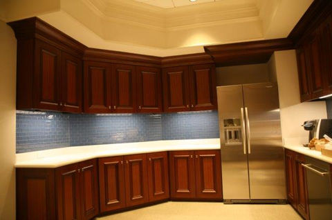 Project Summary: Top to bottom custom interior remodel for an executive suite; featuring custom millwork, VCT flooring, solid surface top & backsplash in the breakroom, new plumbing, HVAC/Electrical rework...